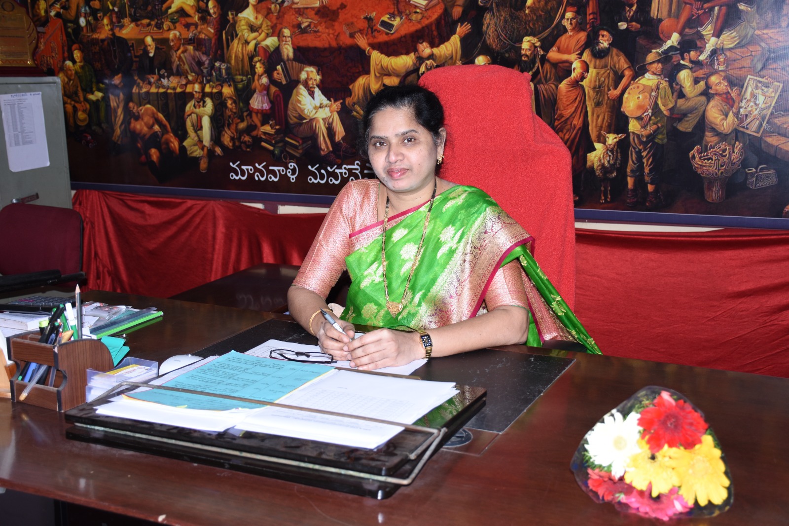 I take this opportunity to thank our esteemed Commissioner of Collegiate Educationfor continuous guidance, my teaching and non-teaching colleagues for their cooperation andalso thank parents who stand by us. With a caring heart, I blessall my students and promise that we will walk the extra mile to help you all achieve your target goals.